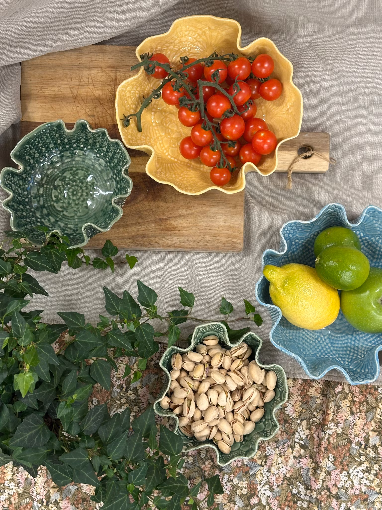 Liten skål i grønn. Liten skål med nydelig mønster i høsten mest populære farge. Så fin som den er eller fyll med noe å kose deg med