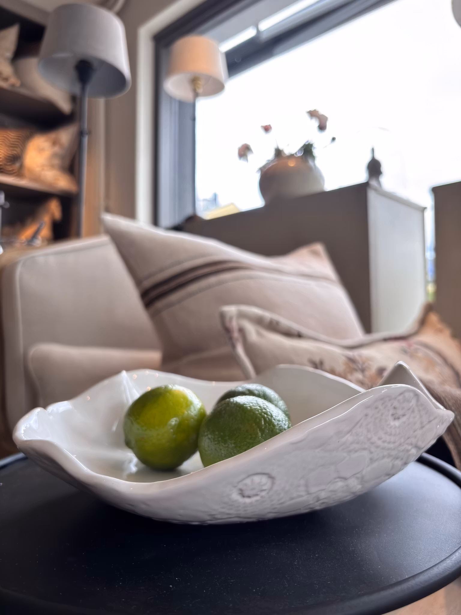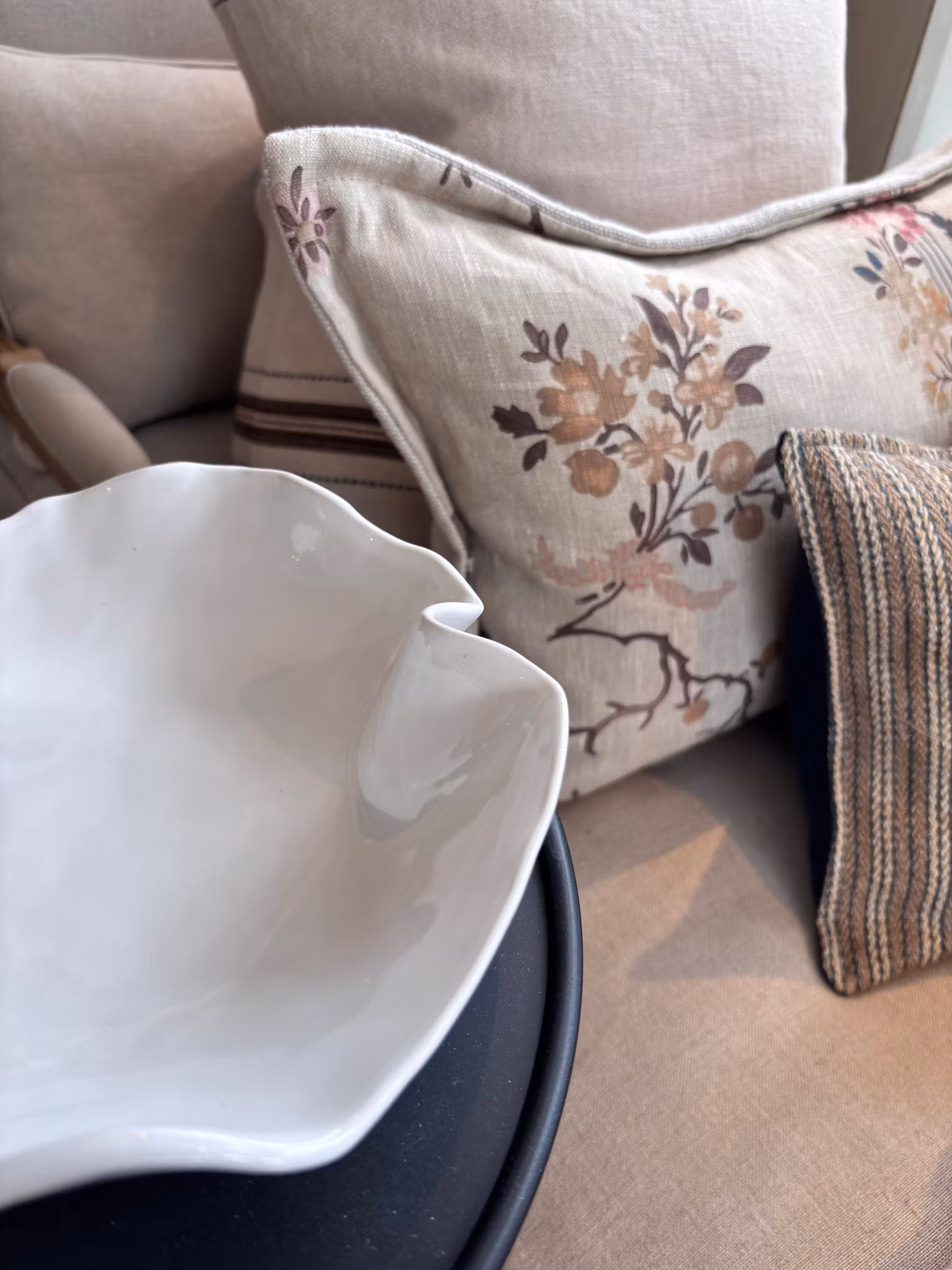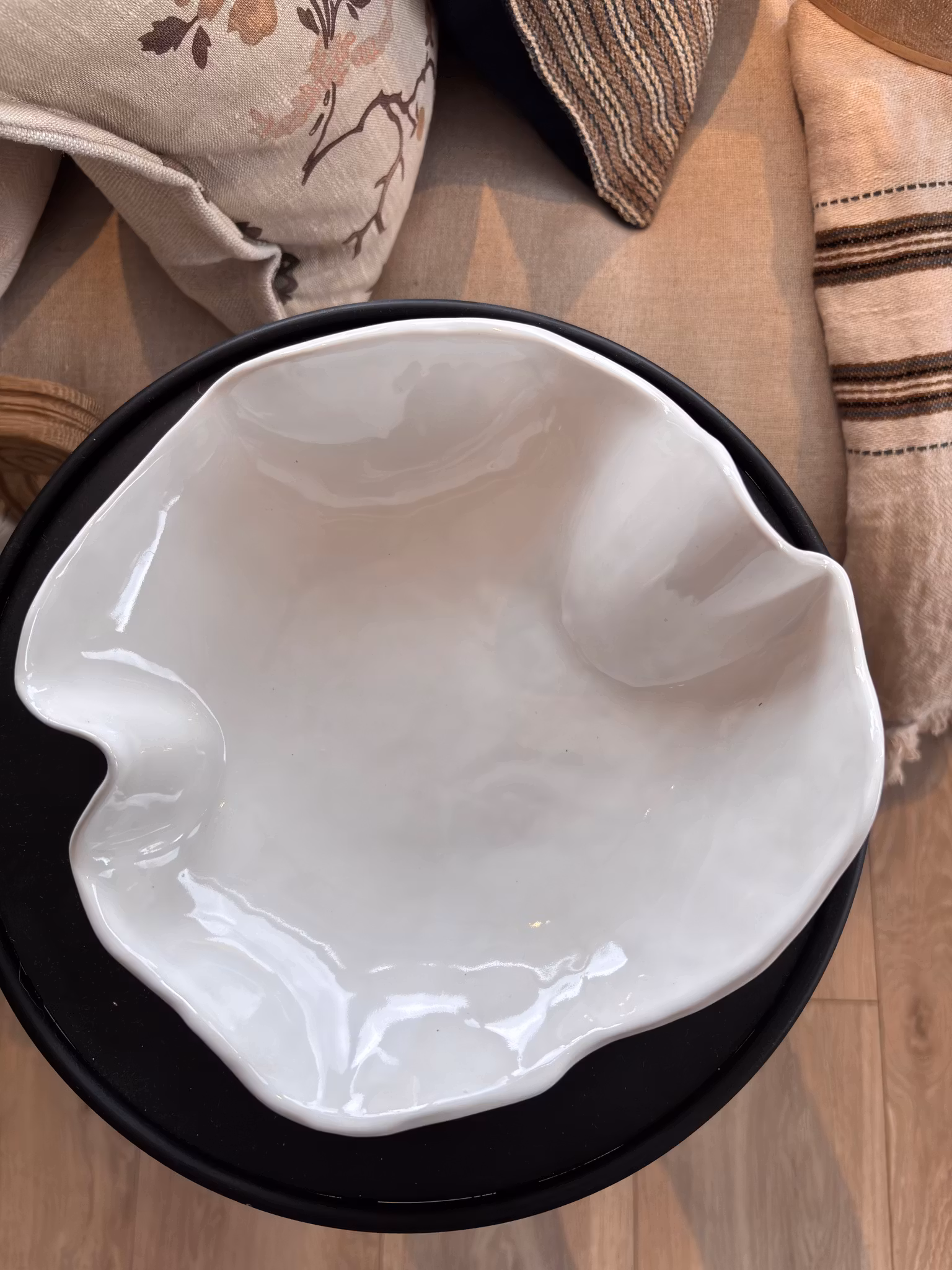Nydelig medium stilrent fat i hvit. Avtrykk av mønstret duk på utsiden og glatt på innsiden. Passer til dekor, mat og snacks.