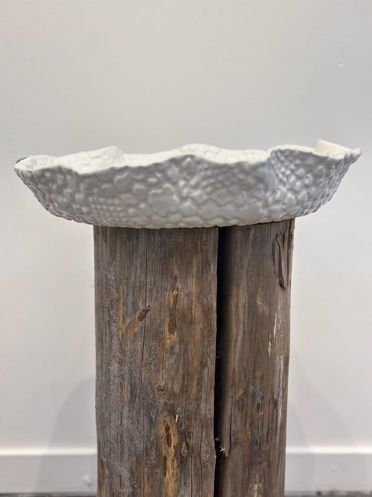 Et nydelig fat med med masse struktur fra et gammelt heklet sengeteppe jeg tidligere hadde på sengene på Stabburet på hytta på Hvaler - likt på begge sider.