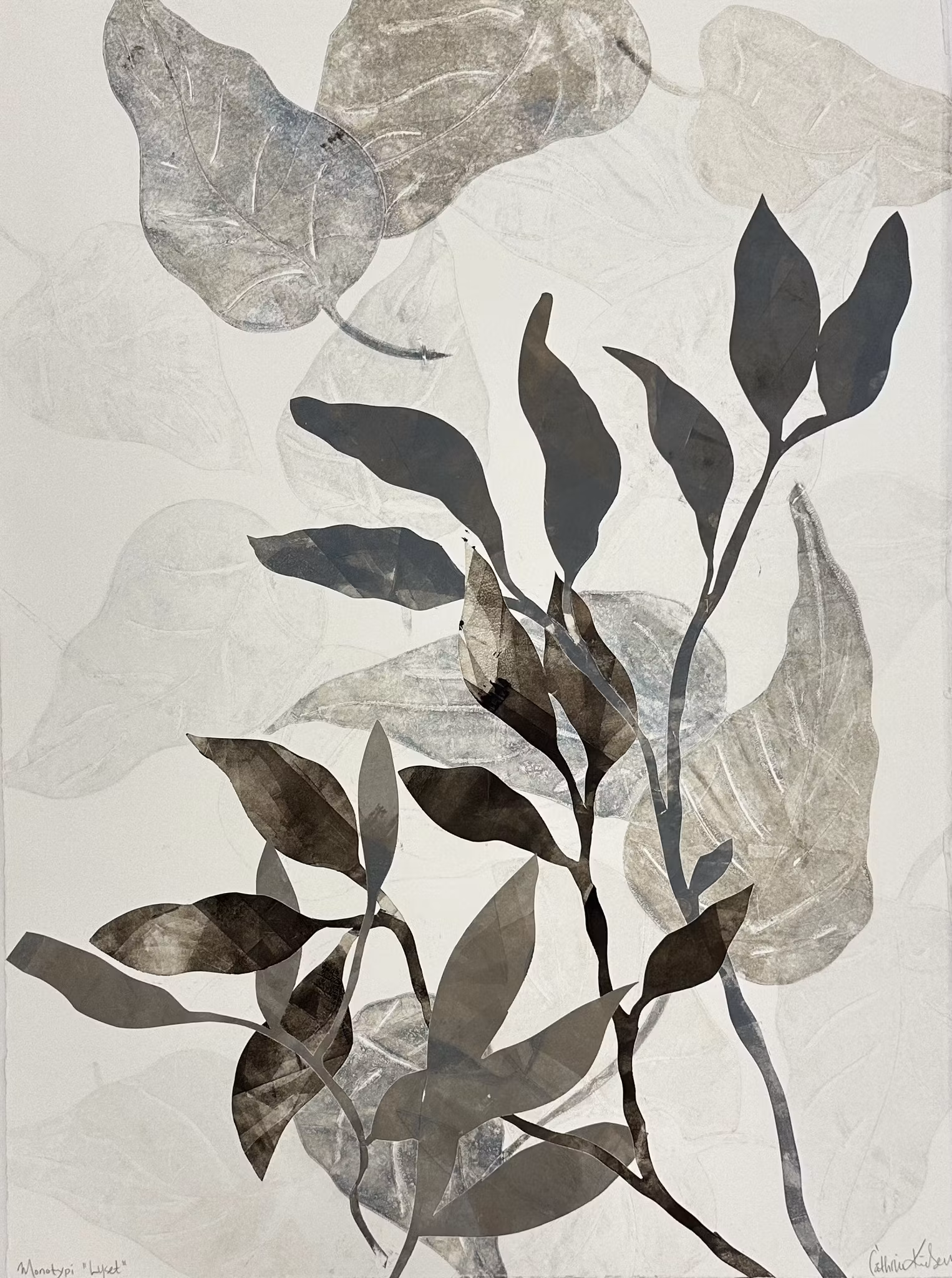 Monotypien er trykket på tykt papir og kan derfor ikke rulles. Dette trykket må derfor hentes i atelier eller sendes som spesialleveranse og behandles varsomt.